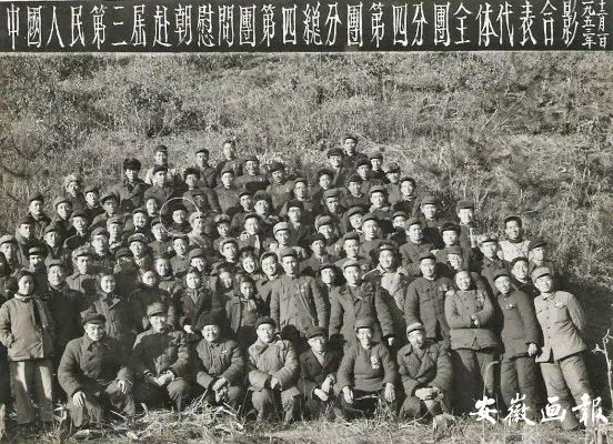 中国人民第三届赴朝慰问团第四总分团第四分团全体代表合影(图中圈内为汤蠡舟)