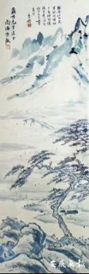 何香凝女士作画、柳亚子先生题款,赠送给汤蠡舟的山水画轴