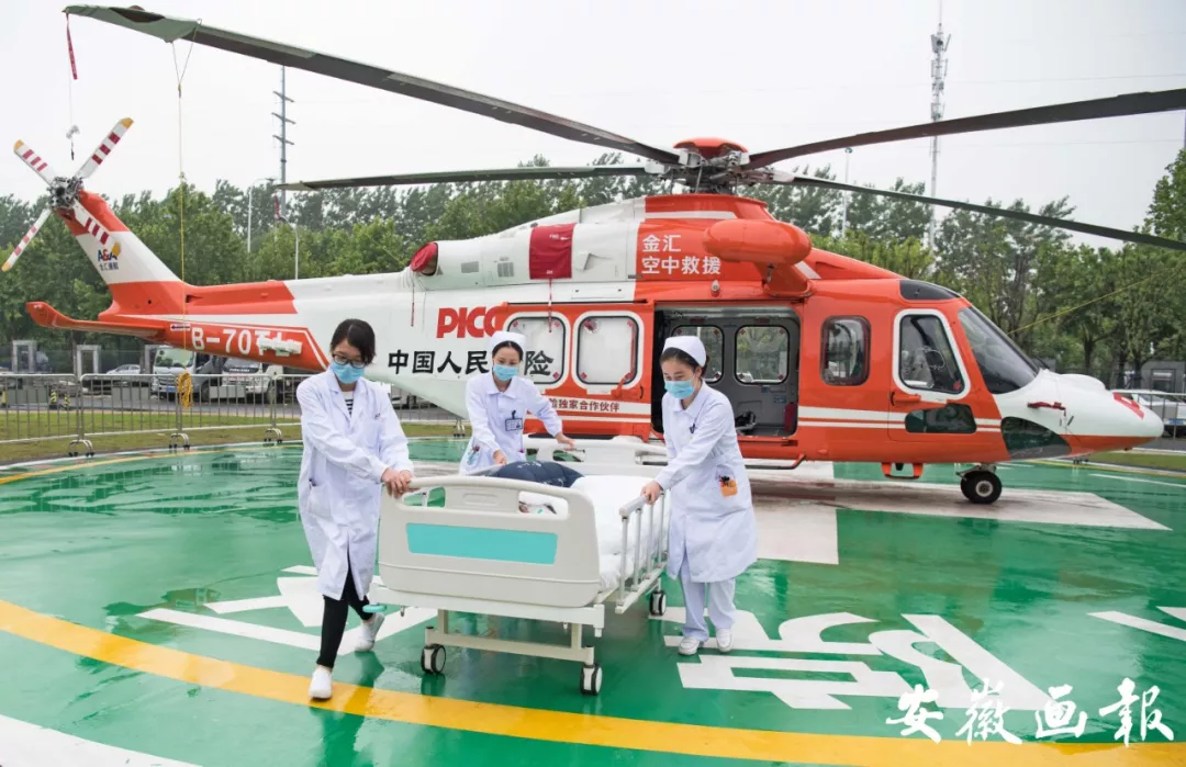 2017年8月,安医大一附院高新院区正式开诊。这座形似“航母”的建筑不仅成为合肥的一座新地标,更是安医大一附院实施精准医疗的新阵地。在一附院高新院区,有一块巨大的停机坪和一架橘红色的医疗救援直升机,这是我省第一架空中“120”。