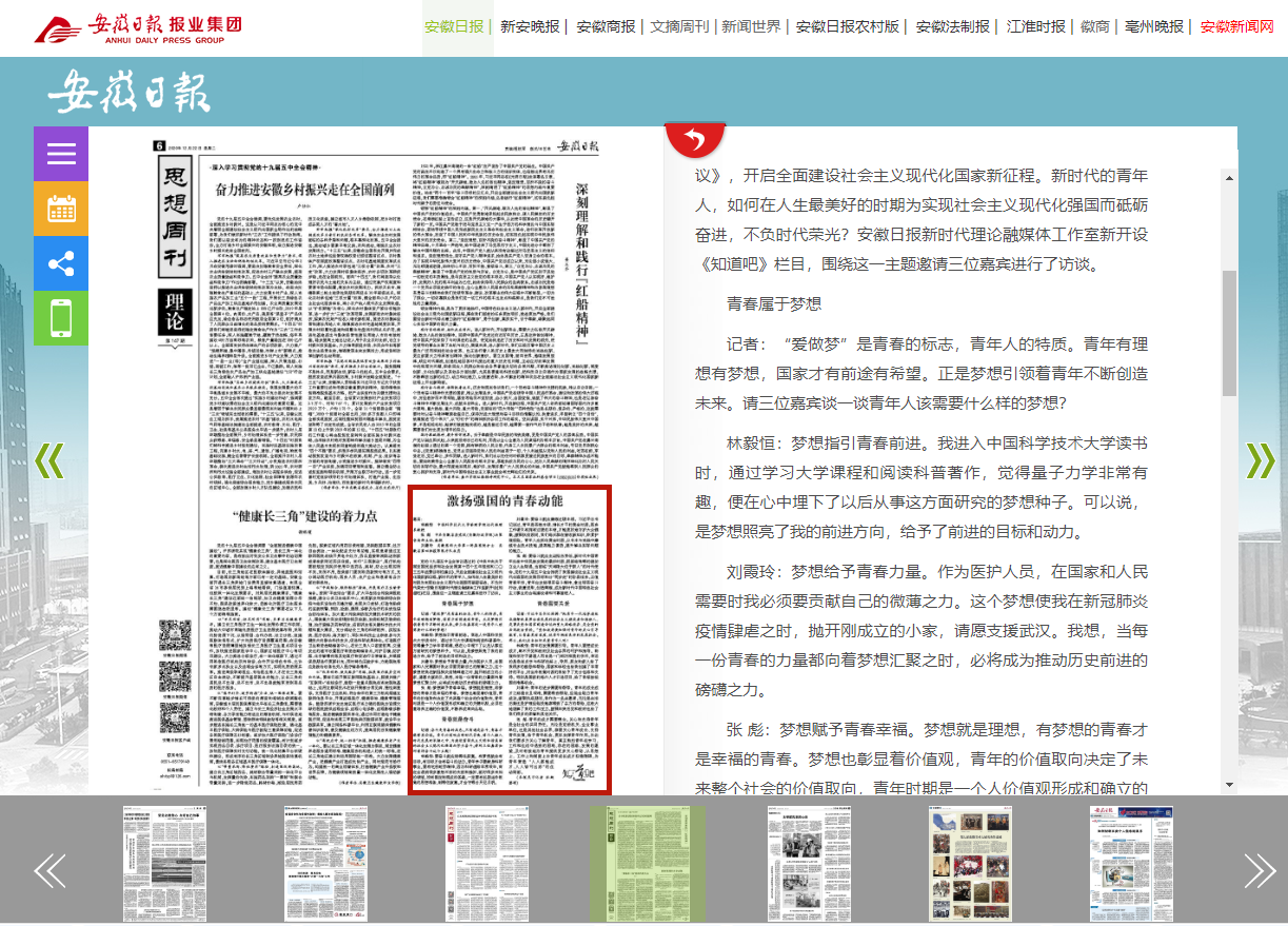 林毅恒:梦想指引青春前进。我进入中国科学技术大学读书时,通过学习大学课程和阅读科普著作,觉得量子力学非常有趣,便在心中埋下了以后从事这方面研究的梦想种子。可以说,是梦想照亮了我的前进方向,给予了前进的目标和动力。