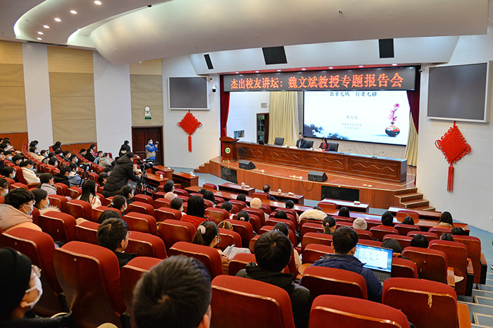 魏文斌以《医者无域,行者无疆》为题,回忆了在母校学习期间的点滴,将个人从事眼科临床工作34年来的奋斗经历、人生经验和感悟思考娓娓道来。“行医是一门最不容易修成正果的修炼。”结合“现代医学之父”威廉·奥斯勒的名言,他勉励学子们通过学会热爱工作、保持心理平衡、感知幸福、培育成熟心智等,不断提升修炼自我,在坚持和勤奋中脚踏实地学习,未来成为让母校引以为荣的良医。