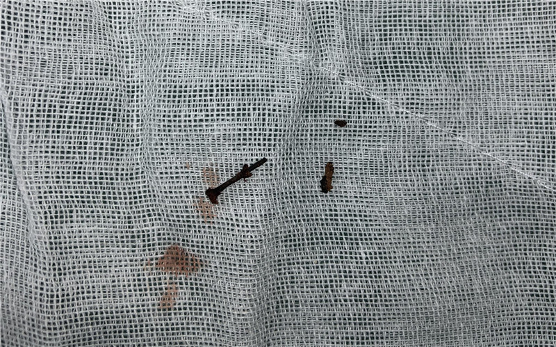 据李永翔介绍,由于针在体内容易游走,定位困难,决定为其采用腔镜手术联合腔镜下超声内镜技术,“治疗”和“观察”同步进行,精准定位,为取针提供保障。经过充分的术前准备,一根长达3.5cm的缝衣针顺利从朱女士的体内取出,针已经出现生锈和腐蚀。整个过程仅30分钟,出血少,创伤小。