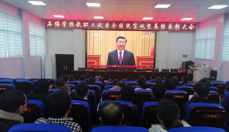 肥东县石塘学校教职工收看全国脱贫攻坚总结表彰大会