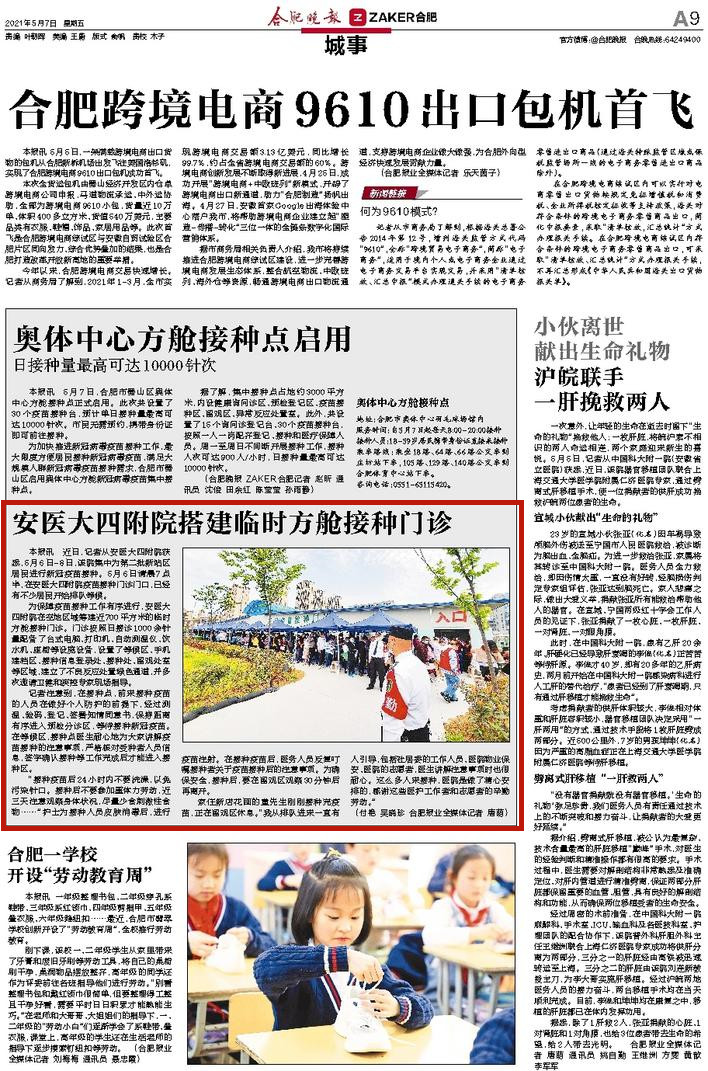 合肥晚报、中安在线:安医大四附院搭建临时方舱接种门诊