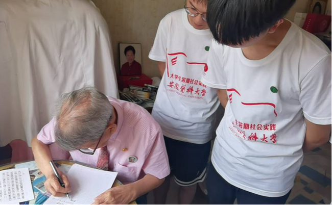 下午3时,队员紧接着来到中共老党员徐少平家中,在得知我们今天要来拜访,徐老早早做好准备以迎接这批特殊的客人。徐老原任安徽省蚌埠市怀远县县委办公室主任,党龄近70年,在任期间尽职尽责,退休后仍向政府机关积极反映社会问题,积极为当地人民谋福祉。