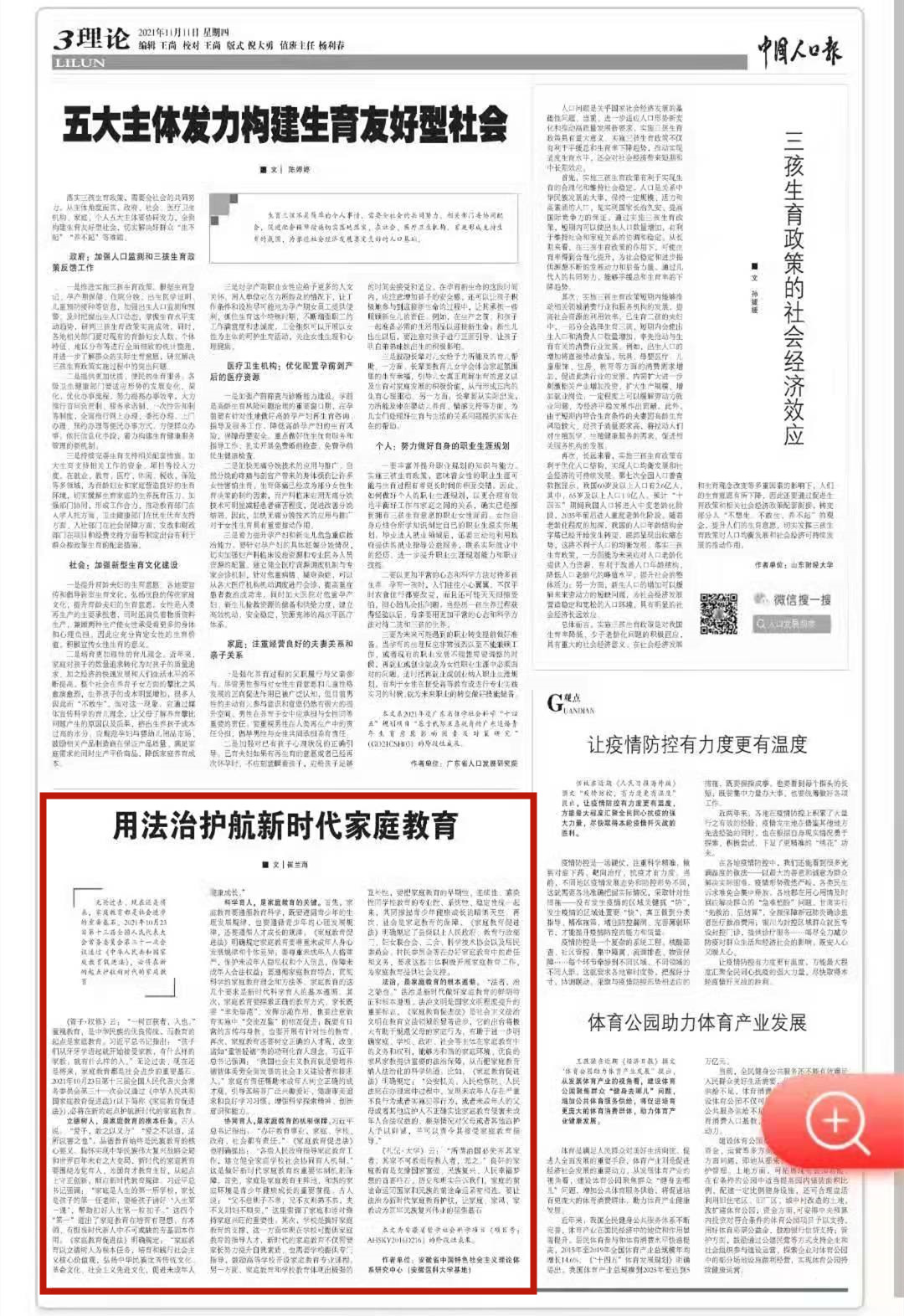 本文发表于2021年11月11日《中国人口报》