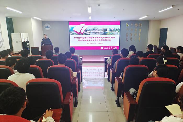 以党的二十大报告和社会主义核心价值观的精神内涵为切入点,陈海燕向同学们阐述了培育和践行社会主义核心价值观的重大意义,并结合自身多年的学习体会和经验,给同学们提出了十条建议。他表示,青年大学生必须认真学习、深刻领会习近平新时代中国特色社会主义思想,将爱国主义、集体主义、社会主义教育内化于心、外化于行,努力成长为能够担当民族复兴大任的时代新人。要从自己做起、从现在做起、从小事做起,把践行社会主义核心价值观落到实处。