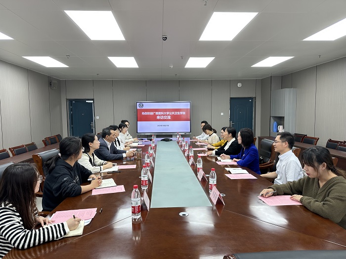 近期,广西医科大学公共卫生学院党委书记苏莉带队,来我校公共卫生学院进行调研交流。该院党委书记马军成出席并主持会议。