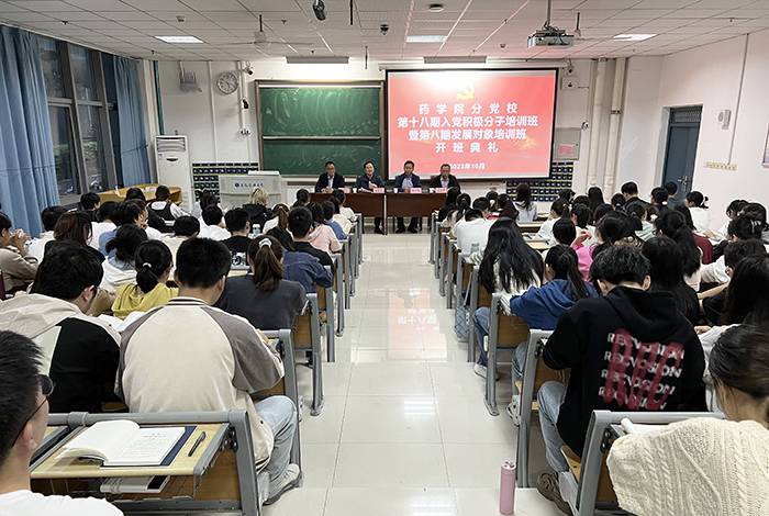 10月27日晚,药学院分党校第十八期入党积极分子培训班暨第八期发展对象培训班开班典礼在知行楼B座11101教室举行。校党委组织部副部长、党校常务副校长白亮亮出席开班典礼并讲话。该院党委书记骆广东作动员讲话,院正处级组织员李常玉宣读关于举办本次培训班的有关通知文件,院党委副书记汪江平主持开班典礼。