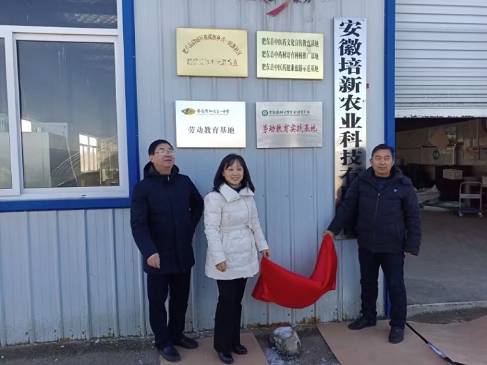 12月22日,生命科学学院在安徽培新农业科技有限公司产业基地举行劳动教育实践基地揭牌仪式。学校后勤管理处处长张军、院党委书记沈慧,安徽培新农业科技有限公司负责人、“安徽好人”元运竹出席仪式并共同为基地揭牌。
