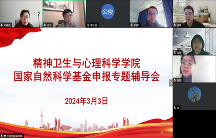3月3日上午,精神卫生与心理科学学院线上召开国家自然科学基金申报专题辅导会。院长朱春燕出席会议并讲话,副院长许尹主持会议。