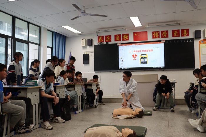 在安徽师范大学附属肥东实验中学开展“关爱生命,救在身边”培训活动中,指导老师向师生们详细讲解心肺复苏术、气道异物梗阻的原因及急救方法、自动体外除颤器(AED)的使用等应急救护知识。培训理论与实操演练相结合,现场气氛热烈,师生踊跃参与互动。活动增强了师生安全意识,提高了同学们突发事件处置和自救互救能力,受到该校领导和广大师生的一致好评。
