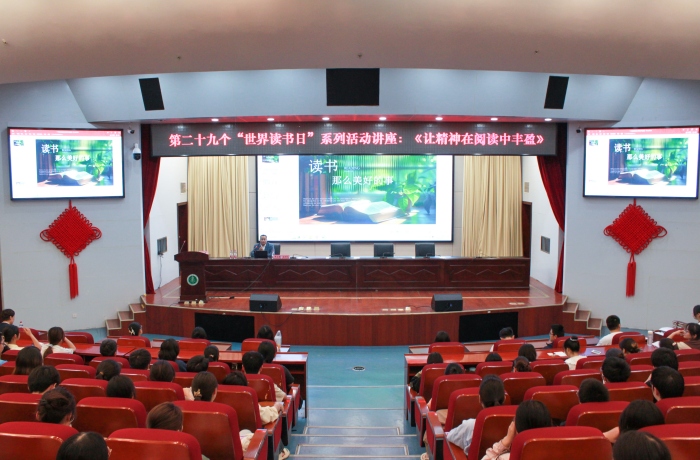 4月23日晚,学校第二十九个世界读书日系列活动首场讲座在图书馆第一学术报告厅举行,校党委宣传部常务副部长、新闻中心主任单永强应邀作题为《让精神在阅读中丰盈》的读书分享。