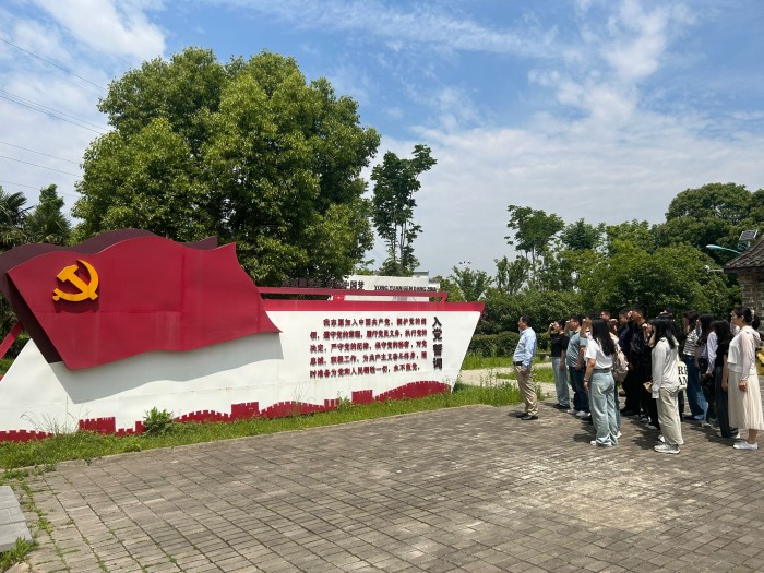 师生党员还前往位于肥东县撮镇瑶岗村的渡江战役总前委旧址,参观了总前委参谋处旧址、渡江颂书画展厅、瑶岗红色文化长廊、中共中央华东局旧址、渡江战役总前委机要处旧址等展厅。在一张张生动的图片、一幅幅激昂的题词、一件件珍贵的历史文物前,大家深入了解总前委在瑶岗运筹帷幄的恢宏历程,向先烈们的大无畏精神致以崇高敬意。在指挥部旧址前,全体党员面向鲜红的中国共产党党旗,重温入党誓词,用庄严的承诺表达了新时代共产党员“永远跟党走”的坚定信念。