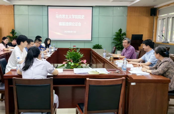 6月13日,马克思主义学院在该院一楼会议室召开院史编纂提纲论证会,推进院史编纂工作。副院长储著源主持会议,院史编纂工作专班成员、部分老教师代表参会。