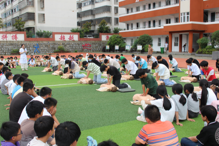 6月20日,实验教学中心联合基础医学院病理生理学教研室,前往岳西县来榜镇帮扶村开展“关爱生命,‘救’在身边”应急救护知识科普培训,当地400余名中学生、村干部和村民接受培训。