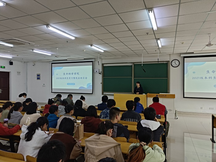 生命科学学院领导班子成员、各学科系和教学办负责人及全体辅导员参加会议。实习指导教师代表、毕业班学生代表分别在会上发言。(生命科学学院 侯迥)