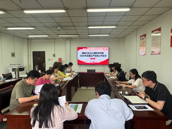 5月15日下午,精神卫生与心理科学学院召开2025年全面从严治党工作会议,学院院长朱春燕、正处级组织员袁方、副院长许尹参加会议,院党委副书记、纪委书记陶群主持会议。