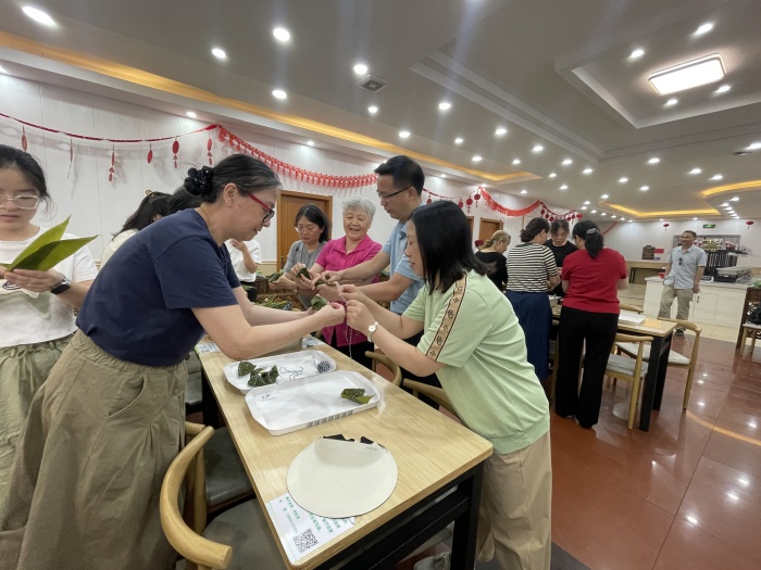 5月30日下午,离退休人员工作处和马克思主义学院在梅山路校区食堂二楼教工餐厅举办“粽香杏林·情传师生”主题活动。师生欢聚一堂,共迎端午佳节,在劳动实践中品味传统文化魅力。两单位领导、离退休老同志和马克思主义学院研究生参加活动。